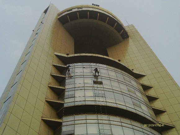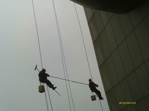 高層外墻清潔、高層玻璃幕清潔、高層外墻粉刷、高空外墻廣告安裝。因?yàn)楦邔油鈮Υ嬖谥kU(xiǎn)性和復(fù)雜性, 所以這項(xiàng)工作是有著相當(dāng)程度的科學(xué)性和專業(yè)性。
